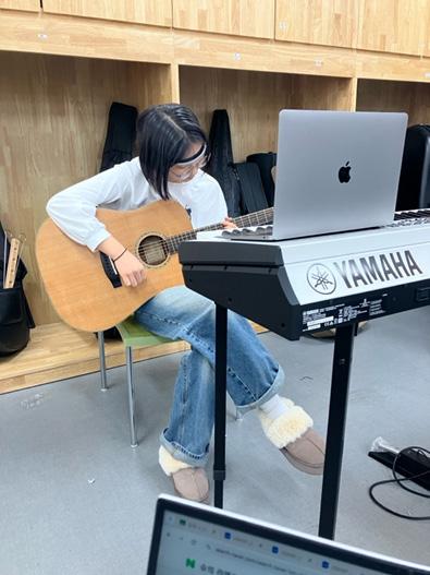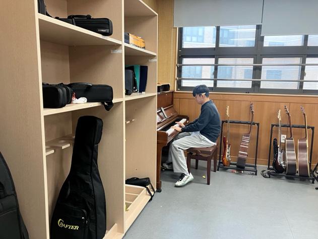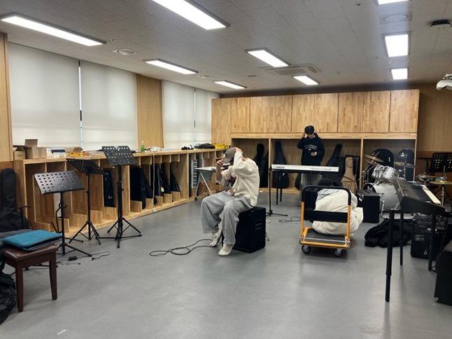 변에 의자와 악기들이 세팅되어 있다 베이스 연주 경험 있음