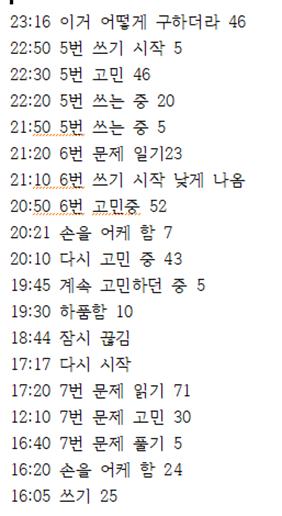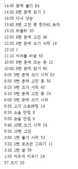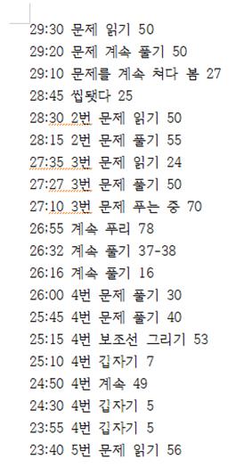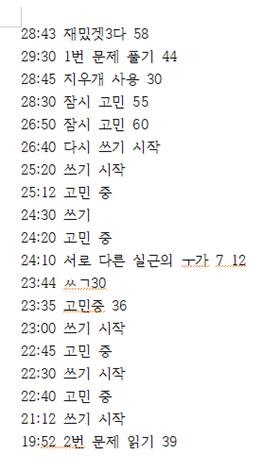 • 주어진 시간(30분) 동안 MIT INTEGRATION BEE 10 문제를 풀이 결과