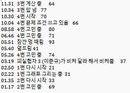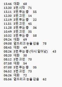 • 비고: 22분 정도부터 문제가 발생하여 데이터가 유실됨