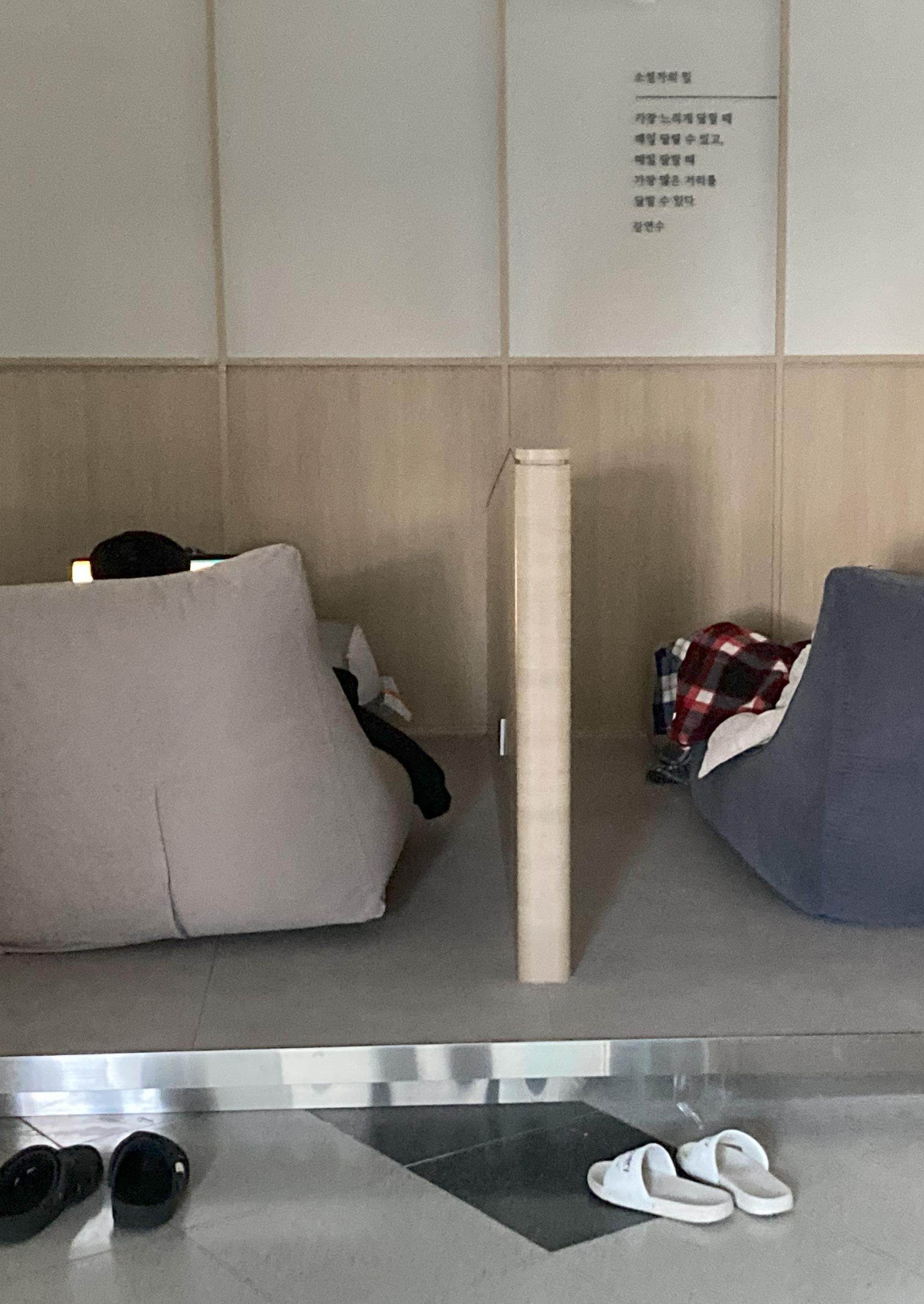 5. 이 장소에서 (4) 목적을 위해 활동할 때 환경 조건 (예. 노래듣기, 헤드폰 혹은 이어폰, 스마트폰 위치, 등등) 은 어떠한 것들이 있습니까? 사진처럼 굉장히 크고 넓은 공간에 사람이 잘 없어서 노래를 크게 틀어놓고 한다; 귀가 예민해서 사실 이어폰 끼는 걸 선호하지 않음; 취식이 가능해 옆에 간식을 두고 먹음