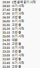 얼마나 자주 이곳에서 (4) 목적을 위해 활동하나요? 매일, 오후 7시 ~ 오전 3시, 공부, 자습 3. 이 장소에서 (4) 목적을 위해 활동 할 때 얼마나 오래 머무나요? 오후 7시 ~ 오전 3시