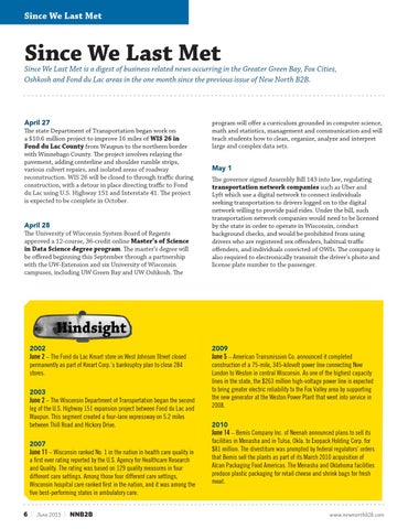 Since We Last Met is a digest of business related news occurring in the Greater Green Bay, Fox Cities, Oshkosh and Fond du Lac areas in the one month since the previous issue of New North B2B.