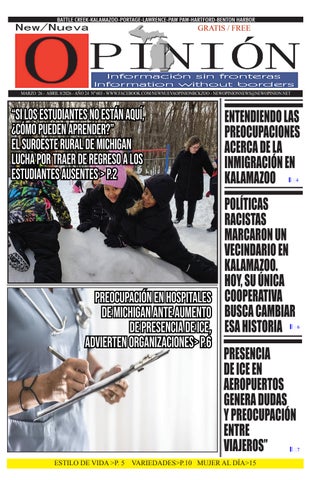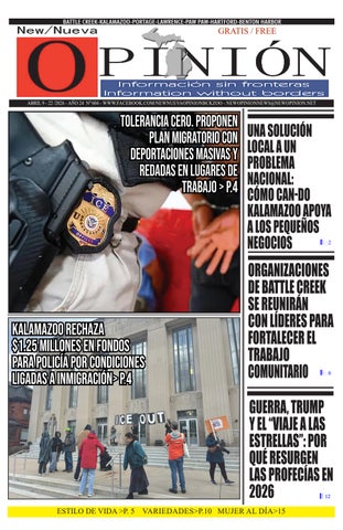 269.282.6715 Convertimos la información en soluciones para las necesidades de la comunidad a través de experiencia, ética, profesionalismo y alta calidad, facilitando el desarrollo y la integración de nuestra comunidad donde circulamos. Mission Convertir la información en soluciones para las necesidades de la comunidad. To transform information into solutions that meets the needs of the community. Description New/Nueva Opinion tiene su base en Battle Creek, circula cada dos semanas y es distribuido en los condados Calhoun, Kalamazoo, Berrien, Van Buren y otros condados alrededor del sudoeste de Michigan.