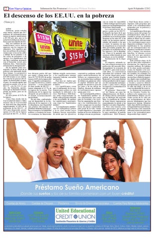 El descenso de los EE.UU. en la pobreza (Viene p.1) militar. Edelman, quien estudia estos temas, reporta que 20.5 millones de norteamericanos tienen un ingreso anual menor a $9.500 por año, que es la mitad de la definición de la pobreza para una familia de tres. Hay seis millones de norteamericanos cuyos únicos ingresos son los cupones de alimentos. Eso significa que hay seis millones de norteamericanos que viven en las calles o debajo de los puentes o en las casas de parientes o de amigos. Los republicanos del ala dura continúan arrasando con el bienestar social, pero Edelman dice, “básicamente, el bienestar ha desaparecido”. En mi opinión como economista, la línea oficial de la pobreza esta anticuada desde hace tiempo. La perspectiva de que tres personas vivan con $19.000 al años es no creíble. En vista de los precios del alquiler, la electricidad, el agua, el pan y la comida rápida, una persona no puede vivir en los EE.UU. con $6.333.33 por año. En Tailandia, quizás, hasta que se derrumbe el dólar, puede ser hecho, pero no en los EE.UU. El 40% posee el 0.3% de la riqueza Como Dan Ariely (de la Universidad de Duke) y Mike Norton (de la Universidad de Harvard) han demostrado empíricamente, el 40% de la población de los EE.UU., el 40% más desposeído, poseer apenas el 0.3% de la riqueza personal de EE.UU., es decir,