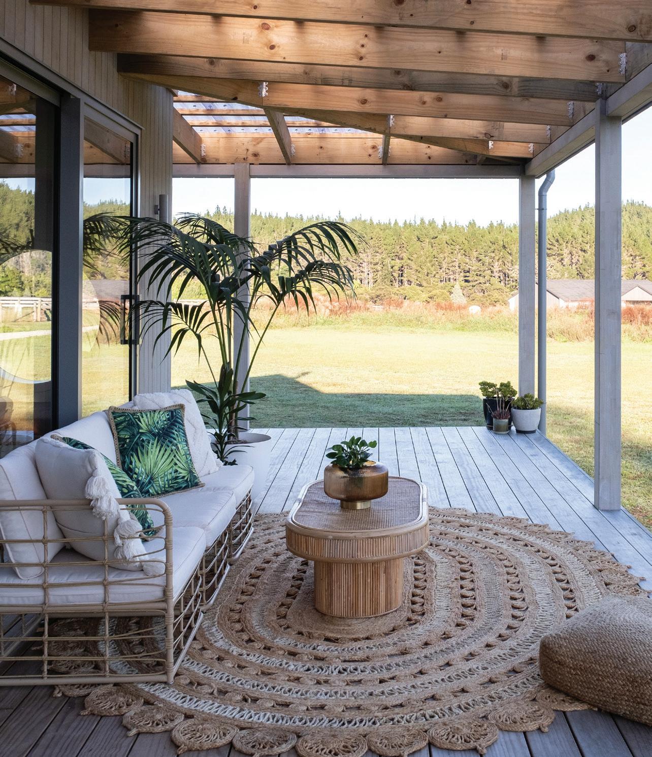Our Accoya® Color Grey Decking, a top choice for material health, brings together the home’s porch areas by providing a consistent and safe meditative space for outdoor entertaining.