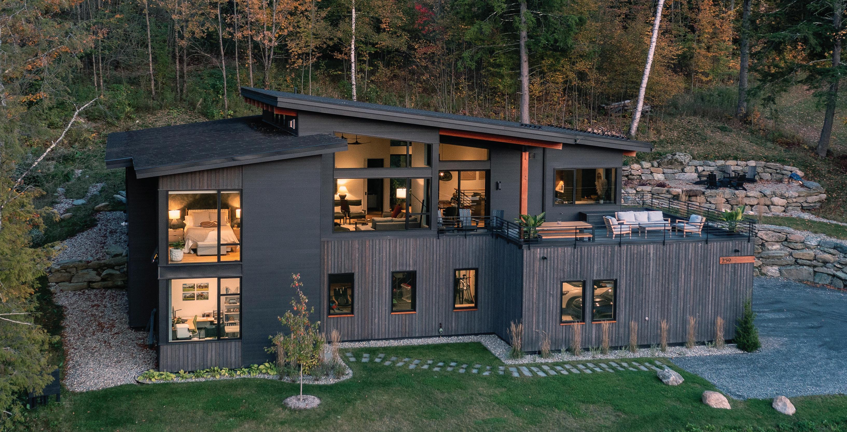 Through a collaboration of varied elements of design, this modern mountain home in Vermont celebrates sustainable materials and their relationships through blending and contrasts.
