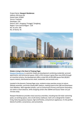 Newport Residences by CDL, previously known as Fuji Xerox Towers, is located in the Downtown Planning area of District 2, Singapore.