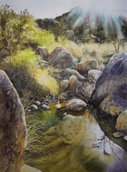 Comme un Don Quichotte cherchant sa Dulcinée, j'ai cherché sur les chemins de l'énigmatique et capricieuse dame de l'eau, la chimère de capturer l'essence de la lumière Chaque aquarelle est un voyage, un dialogue avec l'eau, qui a interrogé mes contours, laissant un apprentissage dans l'intime, et un résultat dans