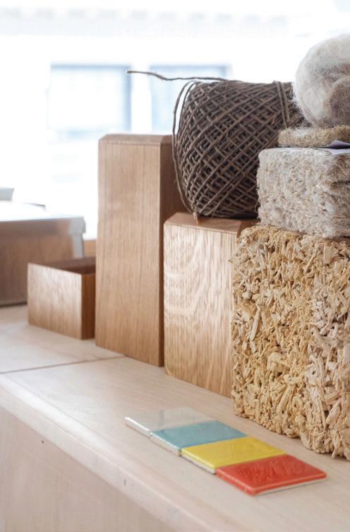 (pages 28−29) BACKGROUND: HempLime bricks being made (photo: Michelle Gevint, MFA Photography ’14); FOREGROUND: The Healthy Materials Lab office (photo: Michelle Gevint, MFA Photography ’14).