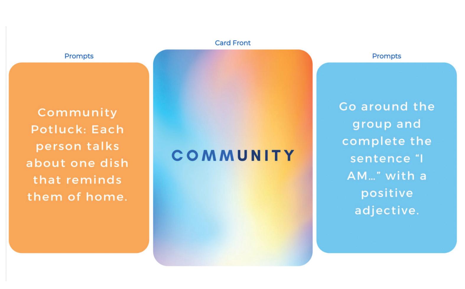 Comm unity” is a pocket-sized card game with conversational prompts that provoke action and interaction. The game – designed for use in the classroom – creates inclusive, comfortable, and friendly connections. This project encourages students to transition from being observers to participants in a group setting.