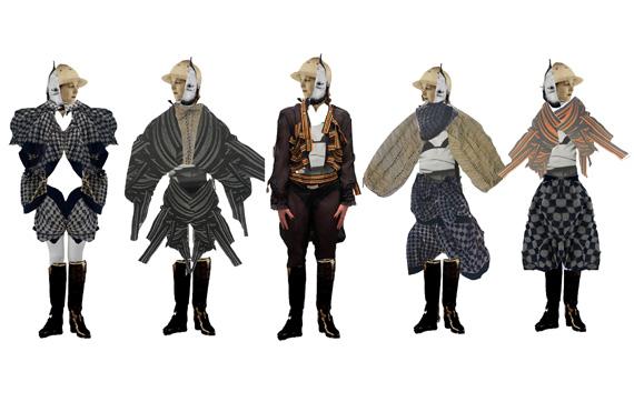 I was blindsided—I had to think for a week to figure out what to do.” Gu engaged in intensive research in the vast image holdings of the New School Library and the New York Public Library; consulted videos, runway photographs, and press archives provided by Burch; and even Googled “how to remake rain boots” in the process of developing a strong on-brand idea and construction technique.