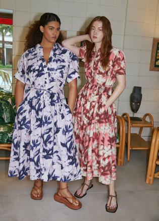Taylor’s long-standing passion for art is reflected in the hand-painted patterns she creates for looks such as the Bellflower print for these versatile dresses, offered in a range of sizes, from her SS 2024 collection.