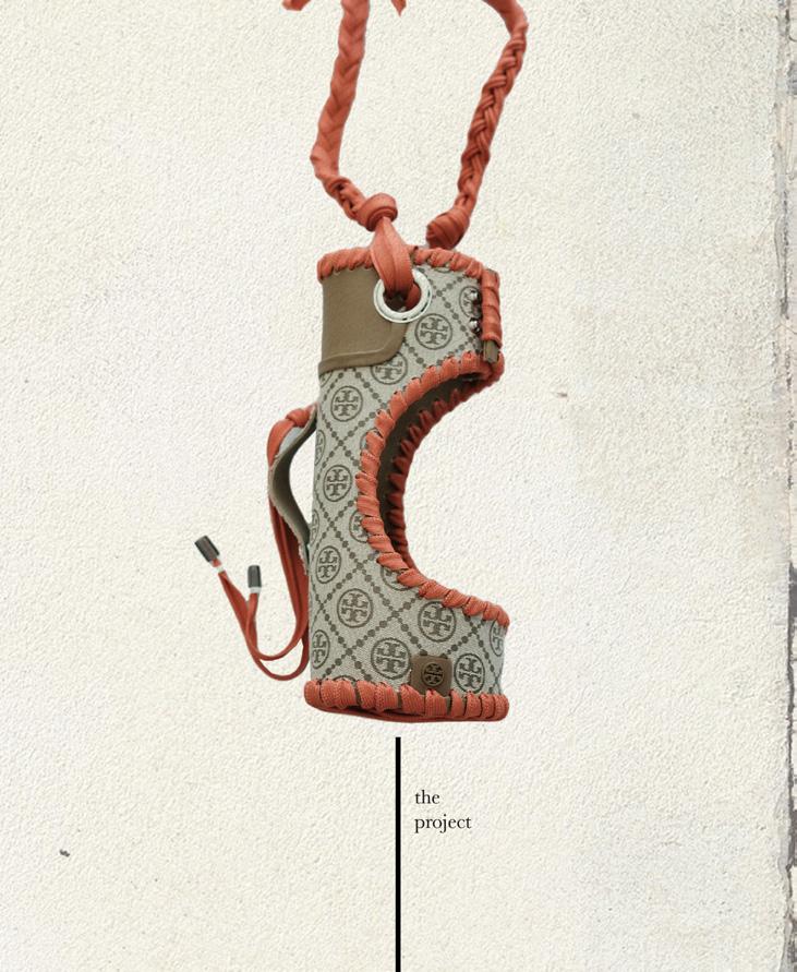 The concept Gu settled on resulted from a discussion with her boyfriend about wine bottle holders they had seen couples bringing to BYOB restaurants. “I realized that the boot was the perfect size to hold a bottle and then started looking at how I could work with its shape, material, and texture to create an accessory, even though I was more used to making garments,” she says. It was also important that her final product fit in with her own work and the items displayed in Tory Burch’s showrooms. “Ultimately, my direction involved merging my style with the brand style, because that was the main goal in this project,” says Gu. “In a way, it’s what every designer for a brand has to do.”