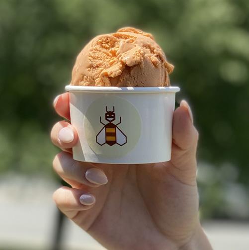 A cup of Randall’s B-Line ice cream, sweetened with local honey from his bees and accompanied by information about environmentalism and sustainability.