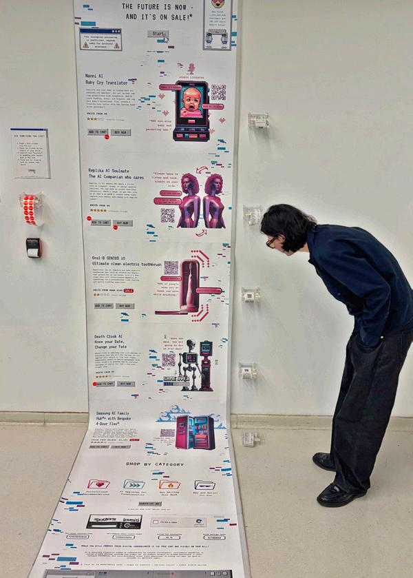 BELOW: In one of Shea’s classes, students created Future AI Artifacts, an exhibition presented during the Management and Social Justice Conference.