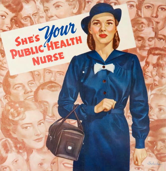 This recruiting poster, designed by James Schucker, popularized the nurse’s uniform Edith d’Errecalde designed for Mainbocher in 1949.