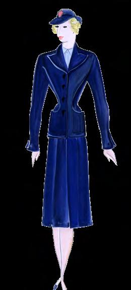When it was unveiled, Mainbocher’s bold new uniform, which featured a prominent bow, ignited an image makeover for the nursing profession. A news article from the era cites the designer’s attention to detail, noting the ensemble’s white coverall apron and navy gabardine coat with “zip-in lining of fireman red flannel.” The uniform was even popularized in a national recruiting poster (shown on this page). In it, the nurse looks capable and empowered. The uniform looks chic and stylish.