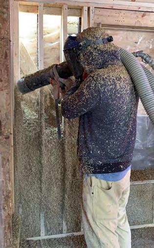 HempLime sprayed into spaces between wood framing replaces a number of layered wall components with an affordable, nontoxic, and breathable material.