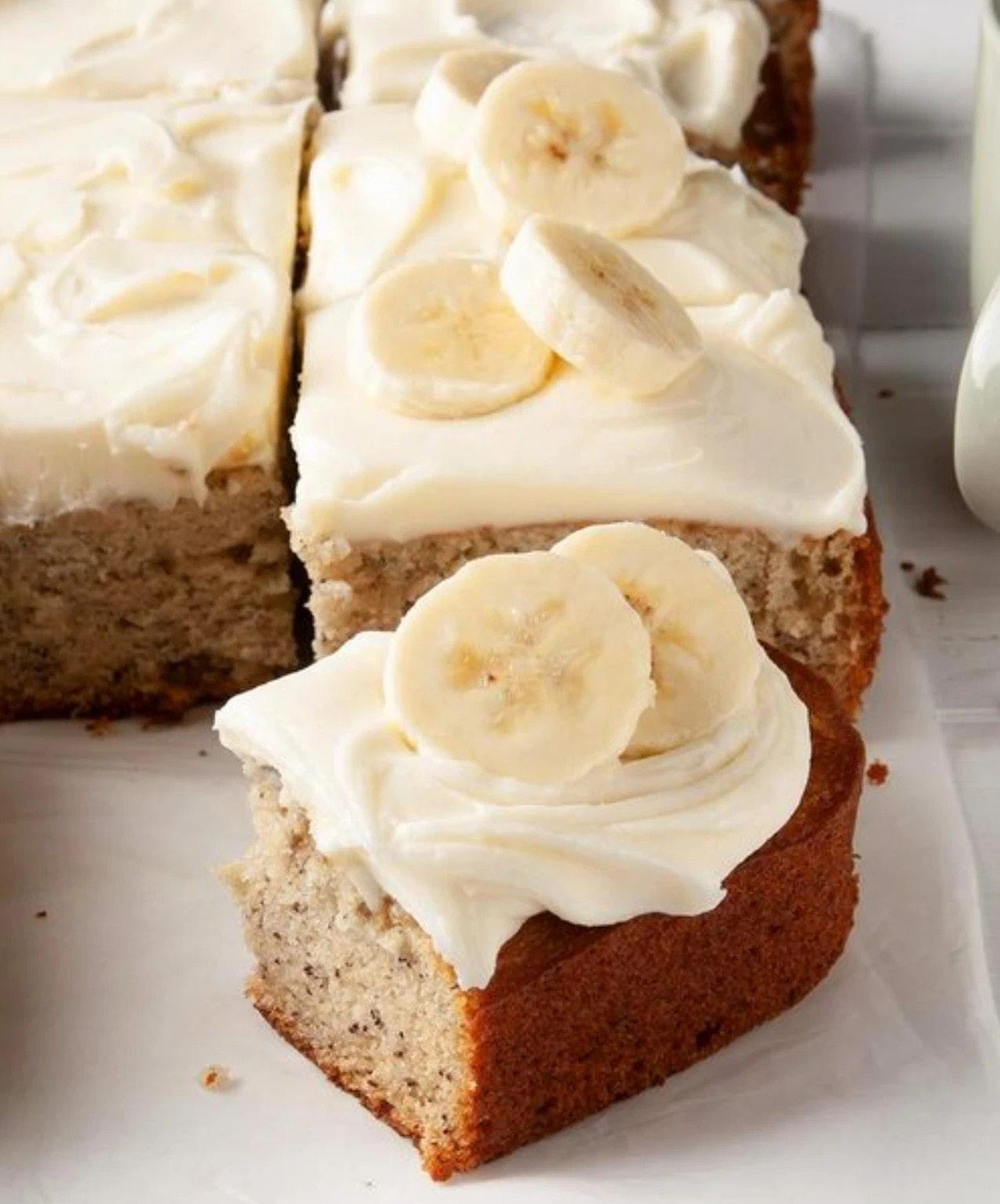 In a large bowl, beat cream cheese and butter until fluffy. Add the confectioners’ sugar, vanilla and salt; beat until smooth. Spread over cooled cake. Store in the refrigerator. If desired, serve with sliced bananas.