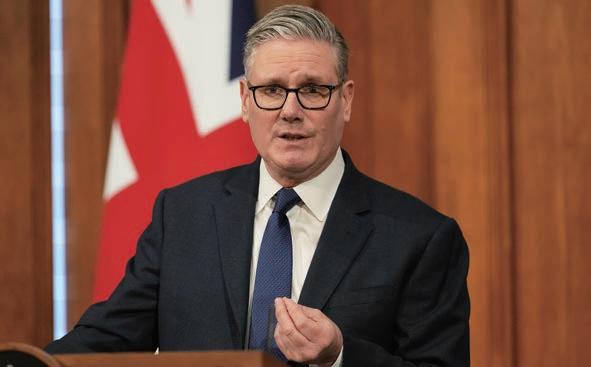 4月1日、ロンドンのダウニング街で行われた記者会見で質問に答えるスターマー首相