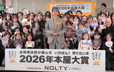 全国の書店員の投票で「一番売りたい本」を選ぶ 「2026年本屋大賞」が9日発表され、朝井リョウさん (36)の「イン・ザ・メガチャーチ」(日本経済新聞出版) に決まった。東京都内で行われた発表会で朝井さんは 「自分の中の偏りが反映されてしまうのが小説」と述べ た上で、「たくさんの書き手の偏りが詰まった本と、そ の本棚が並ぶ書店を守っている皆さまに感謝したい」と 喜びを語った。