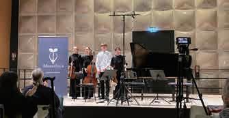写真上:「ムゼティカ」のコンサートの様子 写真下:ハンス・アイスラー音大で行われたEuphorie Quartetのコンサートより