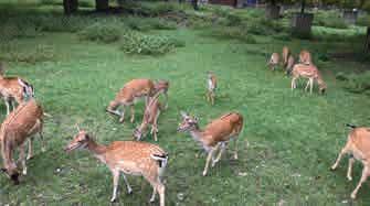 写真上:公園名の由来となったシカたち 写真左下:秋のヒルシュガルテン。奥に見える丘は、冬になると子どもたちのそり遊び場に 写真右下:冬の風物詩アイスシュトックシーセン場