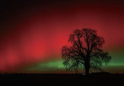 ドイツではオーロラは郊外で見られることが 多かったが、今回はハンブルクなどの大都市で も肉眼で見られるほどの強さだった。ソーシャル メディアでは、ドイツ各地の夜空を彩ったオーロ ラの写真が多数投稿された。写真は、ブランデ ンブルク州リーツェンで撮影されたオーロラ。