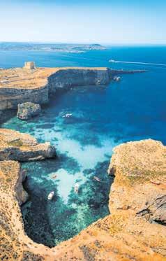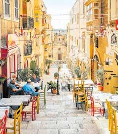 Riddarborgar, palats och uråldriga sten städer. Öns otroliga historia bidrar till dess karaktär. Fenicier, kartager, romare och araber – många har härjat här. I huvudstaden Valletta, som är en del av Unescos världsarv, syns tydliga spår från korsriddartiden. Vandra runt i de historis ka kvarteren och njut av arkitekturen. De sandgula fasaderna lyser upp de trånga gränderna och piazzorna. På toppen av staden ligger den lummiga trädgården Il Barrakka ta Fuq och därifrån kan ni se ”De tre städerna”. Senglea, Vittoriosa och Cospicua med sina höga befästningsmu rar är populära utflyktsmål. Ett måste är medeltidsstaden Mdina som räknas som en av Europas vackraste städer. Mdina var Maltas första huvudstad och kallas för ”den tysta staden”. Att flanera på de bilfria gatorna är som att befinna sig i en saga.