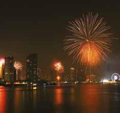 LÄNDER SOM FIRAR NYÅR FLERA GÅNGER OM ÅRET. MEN I THAILAND GÖR MÅNGA DET HELA TRE GÅNGER. De firar sitt egna nyår, Songkran 13-16 april 2023. Det är inledningen på regn perioden och alla slänger vatten på alla för att gå rena in i det nya året. Det kinesiska nyåret är också en stor händelse i Thailand, framförallt i Bangkoks China Town. Men det stannar inte vid det. Det tredje nyårsfi randet, vårt västerländska, har också blivit en stor högtid. Självklart är det främst på semesterorterna som det firas men även Bangkok och Chang Mai är kän da för sina fantas tiska fester. Bangkok är en partystad – rik
