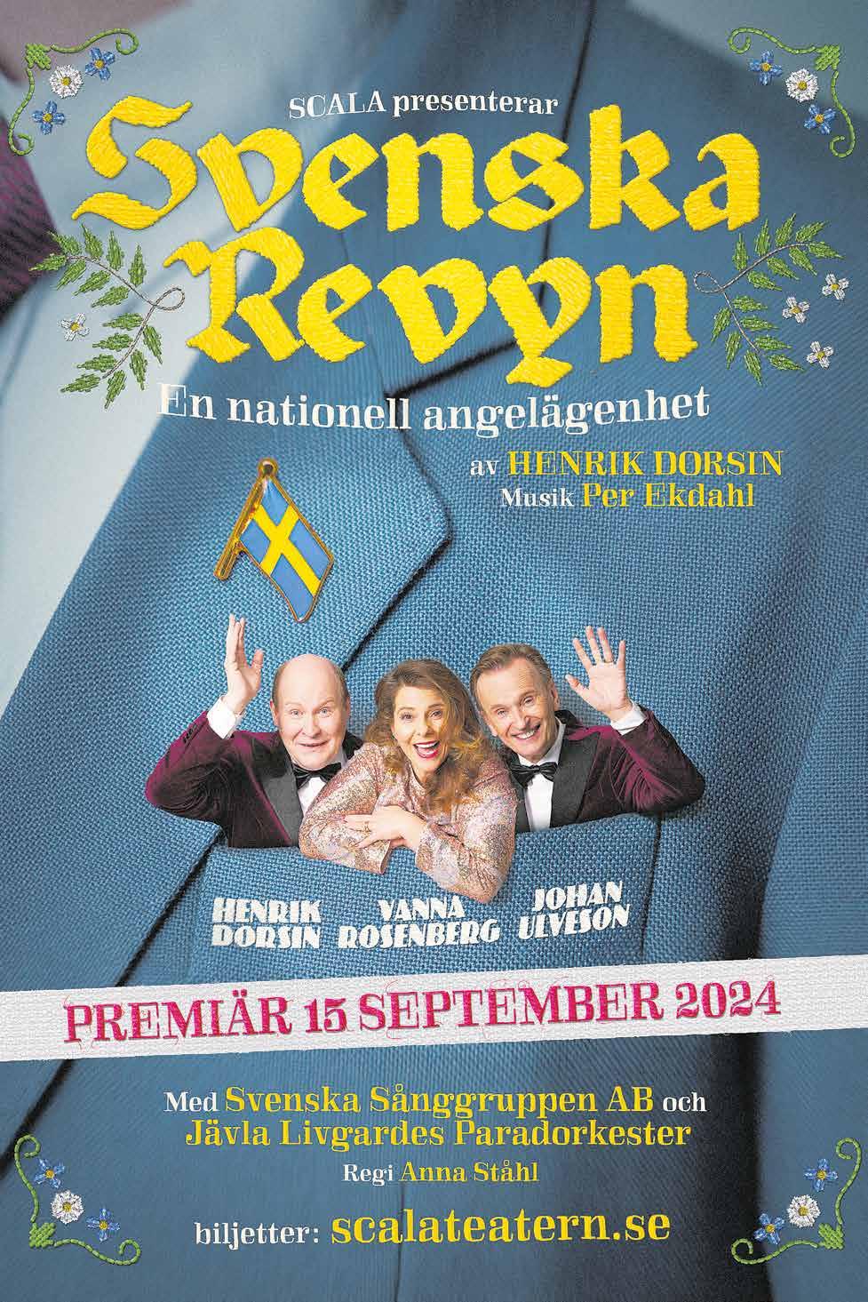 Scalateatern presenterar även Svenska Revyn, en nyskriven revy av och med Henrik Dorsin i sällskap av både Vanna Rosenberg och Johan Ulveson på scen.