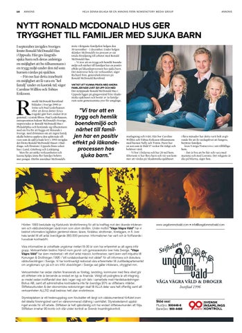 I september invigdes Sveriges femte Ronald McDonald Hus i Uppsala. Här ges långtidssjuka barn och deras anhöriga en möjlighet att bo tillsammans i en trygg miljö under den tid som barnen vårdas på sjukhus. – För oss har detta inneburit en möjlighet att få vara en ”hel familj” under en kaotisk tid, säger Caroline Willfox och Tobias Eriksson.