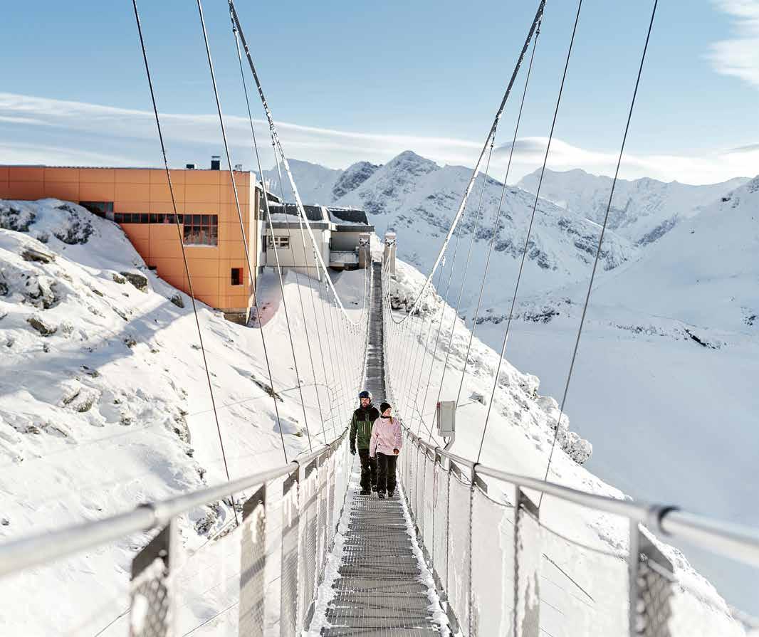 I ÖTZTAL HITTAR VI NÅGRA av Alpernas mest snösäkra backar. En kostnadsfri skidbuss förbinder de två skidsystemen Sölden och Gurgl vilket ger stor variation. Sölden är känd för sin imponerande höjdvariation –från 1 350 till 3 340 meter – vilket garanterar snösäkerhet från oktober till maj. Med 31 moderna liftar och en kapacitet på 65 500 skidåkare per timme slipper du långa köer. Missa inte IceQ, Österrikes högst belägna gourmetrestaurang. Ett stenkast från Sölden ligger Gurgl som är ett lugnt och lyxigt alternativ. Skidområdet sträcker sig upp till 3 030 meter och erbjuder perfekta förhållanden från mitten av november till slutet av april.