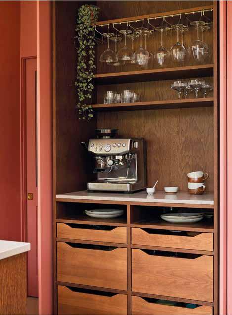 1. LAMPA. PH 5 pendel från Louis Poulsen. svensson.se 2. KÖK. Miljövänliga luckan Wood med ek från hållbart skogsbruk. ballingslov.se 3. KÖK. Smart pocket-door skåp i mörk ek kompletterar det varmrosa köket. nordiskakok.se 4. SKÅL Baburu big från 101 Copenhagen. svenssons.se 5. SERVERINGSVAGN Lager från Ferm Living med en industriell, stilren look i aluminium perfekt för förvaring och för servering av olika tilltugg. lannamobler.se 6. TERMOSKANNA Bernadotte från Georg Jensen. illumsbolighus.se 7. KÖK Arkitekt Plus Gryning - ett symmetriskt kök med vitrinskåp i ekfanér med räfflat glas och flertalet eleganta stendetaljer. marbodal.se