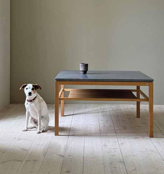 MASSIVA NATURMATERIAL OCH naturliga ytbehandlingar gör att möblerna lätt kan underhållas, vårdas och renoveras. Vid behov till och med återställas till nyskick, flera gånger om. Exempel på lokala material som används av finsnickeriet är kalksten och lammskinn.