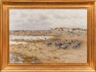 Bruno Liljefors - Gäss vid sjön, olja på duk, 61 x 81 cm inkl. ram, Pris vid förfrågan