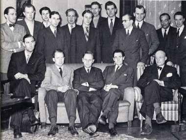 VÄNSTER. Lars-Olof Lennermalm, här tillsammans med dotter Karin, var en ofta sedd besökare på träffar, med hans vackra Mercedes-Benz 540K. UNDER. De aderton som bildade det som sedermera skulle bli Automobilhistoriska Klubben.
