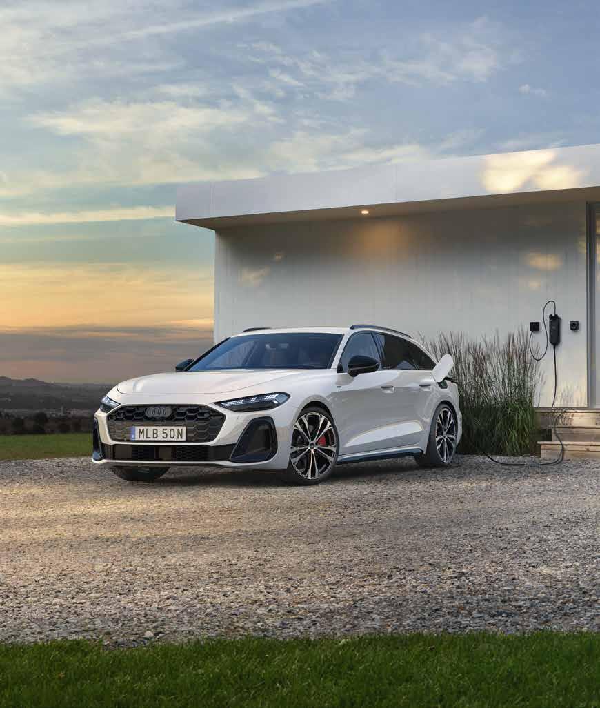 Förbrukning blandad körning: Bensin: 2,7–2,1 l/100 km; Elförbrukning (blandad körning): 15,9–15,0 kWh/100 km. CO₂-utsläpp blandad körning: 61–47 g/km. Förmånsvärde anges som netto/mån vid 50 % marginalskatt. Beräknat för inkomstår 2025. Audi Sverige reserverar oss för eventuella ändringar, felskrivningar och avvikelser.