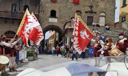 1. VI VÄLKOMNAS i Cortona i provinsen Arezzo med flaggspel, stadsvapen och borgmästare.
