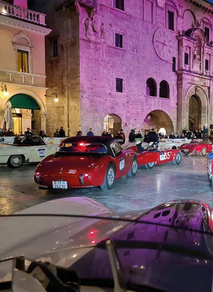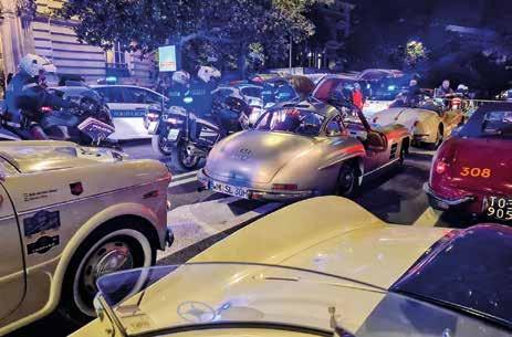 EN AV HÖJDPUNKTERNA med Mille Miglia är atmosfären kring racet. Kenneth talade livligt om starten på torget i Brescia med alla dessa klassiska bilar som samlas där. Det är väl varje bilentusiasts dröm att få sitta där och höra, se och lukta på dofterna av dessa klassiker, eller hur? Han berättade vidare om hur han körde genom italienska byar med lokalbefolkningen som hejade på, vilket gav oförglömliga minnen. Jag frågade Kenneth om han kunde välja ut det absolut bästa minnet från sina äventyr i Italien. Han svarade: ”Det är helhetsupplevelsen, planering och förberedelser under nästan ett år, självklart själva racet med alla deltagarna och den fantastiska organisationen. Men även den stora tillfredsställelsen att lyckas komma i mål efter alla strapatserna.” 6