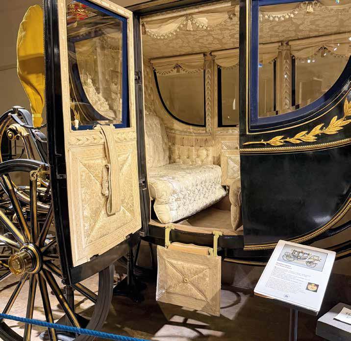 Vi får se paradkupéer och så kallade landåer. Den mest framstående är sjuglasvagnen som tillverkades till Oskar ll:s 25-årsjubileum som regent 1897. Rundturen avslutades i prinsessan Sibyllas garage. Här finns en Cadillac Fleetwood Seventy-Five Limousine från 1969 och en Daimler DE27 från 1950. Bilarna används vid speciella tillfällen.
