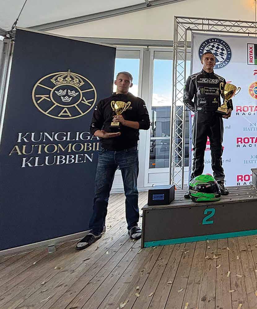 Vigor Hjorvard (20) tog andraplatsen i Rotax Max DD2 och Simon Billman (21) blev fyra.