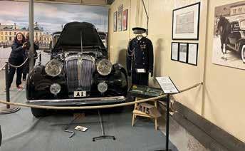 1. SAMLING I RIDHUSET med hovstallmästaren Hedlund. 2. I PRINSESSAN SIBYLLAS garage hittar man många fina skyltar, däribland KAK-märken till bilen. 3. EN 1950 ÅRS Daimler DE 27 i mycket fint skick. 4. ”HASTINGS”