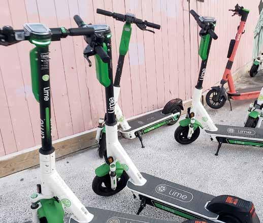 JU FLER TRAFIKSLAG som införs desto viktigare är det att alla kan dela på stadens yta på ett säkert sätt. Elsparkcyklarna framförs dock till synes ofta utan hänsyn till trafikregler och parkeras på gångbanor där batteriet tar slut och de används för färd med fler än en person. Flera städer har därför infört förbud mot uthyrning av cyklar som Paris, Madrid och Köpenhamn (tillåtna men med restriktioner) säger Christer Svensén, leg läkare, professor emeritus och ledamot i KAK:s Expertråd.
