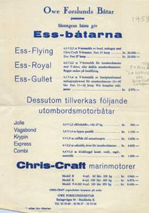 gjorde den lätt händige svensken till båtbyggare. Båtarna blev bra och snygga och bar de medföljande kromade Chris Craft-logotyperna med heder. Trots detta, blev det inga storsäljare. Priset för båtarna i sig, var inga problem. Bekymret uppstod när frakt och tull lades på ursprungspriset. Då blev de platta plywoodpaketen från USA orimligt dyra för den svenske konsumenten.