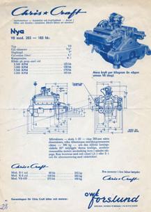 NÄR OWE FORSLUND tog över Chris Craftagenturen från AB Hans Osterman 1957, var det inte bara ett handslag och några inskickade papper till amerikanska Chris Craft som behövde göras. Även Ostermans lager av motorer, delar och en och annan båt ingick också i överenskommelsen mellan parterna. Motorerna var en blandning av Chris Crafts blåa driftsäkra raka sexor, som i grunden härstammade från 1930-talet samt några maskiner av den helt nya marinkonverterade smallblocks V8:an 283. En maskin