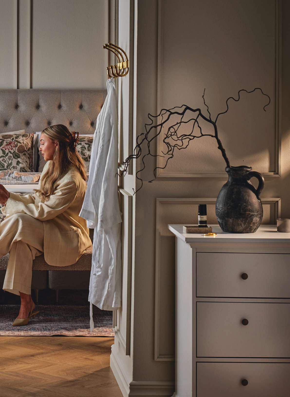 Kontinentalsäng Delux Sense, dubbelsäng med bäddmadrass Delux Sense, tyg Milla beige , 160x200 cm 15.495· Sänggavel Delux Pikerad XL, B 163 cm 5.795· Sidobord Amanda 2.795· Bänk Otto, B 120, D 40, H 44 cm 2.495· Byrå Elverum, B 96, D 49, H 87 cm 2.995· Kroklist Crest 229· Vävd matta Belek, 200x300 cm 1.795· Taklampa Grapes, Ø 40 cm 2.995· Spegel Viktoria, B 70, H 170 cm 1.995· Örngott till hotellkudde Stratford, 50x90 cm 129· Örngott Stratford, 50x60 cm 99· Pläd Colorado 399· Överkast Adelia, 180x260 cm 499· Påslakanset Elisa, 150x210 cm, 2 delar (499·) Gardin Sunnan, B 140, L 250 cm, 2-pack 299· Vas Hellas, H 29, B 22,5 cm 399·