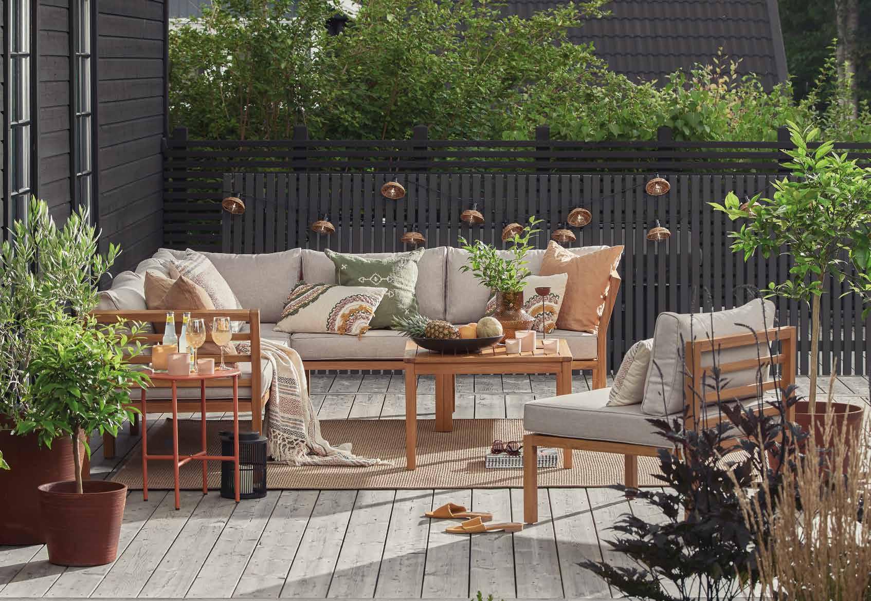 Sköna stunder i solen tillsammans med vänner. Den här soffan har inte bara ett stilrent och snyggt formspråk - den är dessutom byggbar. De olika delarna kan kombineras på flera olika sätt.