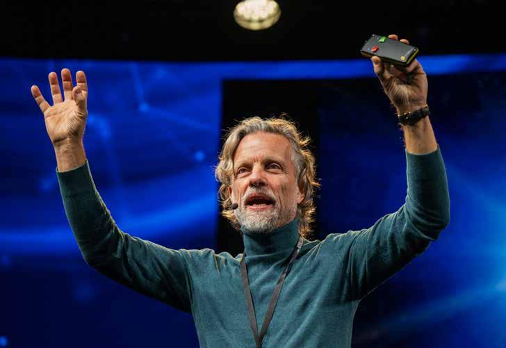 MATS LEWAN, med en bakgrund som civilingenjör och teknisk reporter på Ny Teknik, är inne på samma spår (sid 18). Han menar att den nya tekniken har varit överskattad inom mötesindustrin. I själva verket blir den ett tröttande filter som tar, istället för att ge, energi. Han är själv föreläsare och anser att hans viktigaste uppgift är att beröra, något som AI aldrig skulle kunna göra.