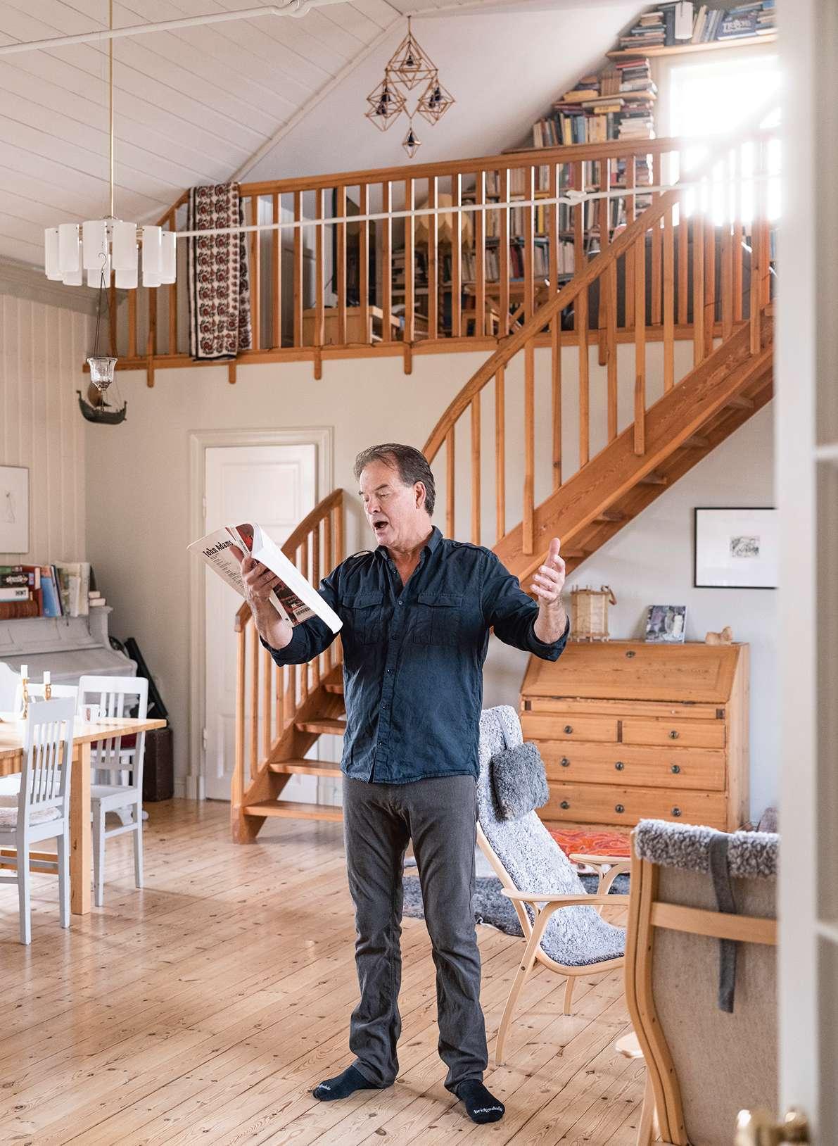 FRÅN STORA VÄGEN till Vinterhamn går en väg till vänster mot Stavsnäs by och Sommarhamn. En allé leder ner till de pittoreska bygatorna kantade av snickarglädje från förra sekelskiftet. Mitt i skärgårdsidyllen ligger ett gammalt missionshus och där hittar vi operasångaren Olle Persson. Han är glad och utbrister med sin kraftiga barytonröst: – Jag är så lycklig över att vi människor får ses igen och att Sveriges kulturscener har öppnat upp.